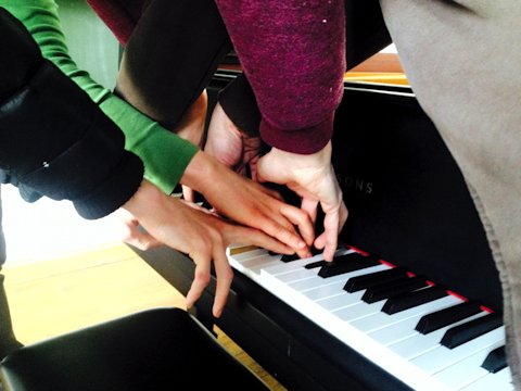 my piece "privat klavier quartett" bridges the world of children and adults, though no dinosaurs are trampling the bridge, instead its about used pianos.